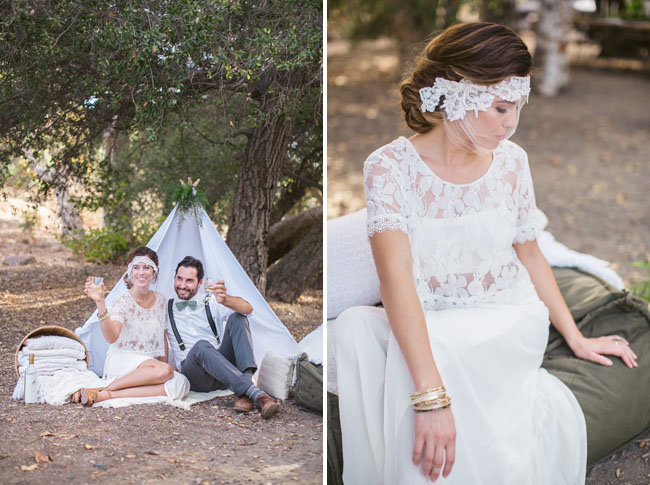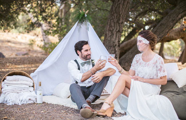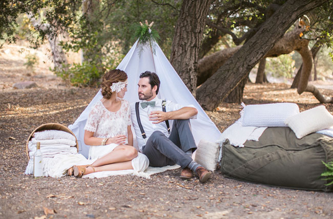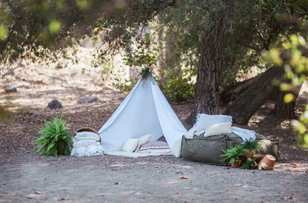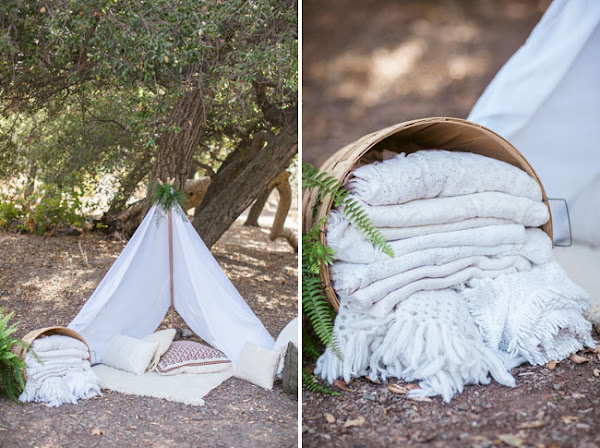 Si estás buscando ideas para un preboda campestre éste reportaje fotográfico es ideal para coger inspiración con un atrezzo tan bonito y sencillo como un teepee, un cestito con mantas y algún puf. Si tenéis la oportunidad de hacer vuestras fotos en un sitio así os lo recomiendo ya que es un recuerdo precioso, además, seguro que cerca de casa conocoéis algún pueblo con un rio o zona con árboles.