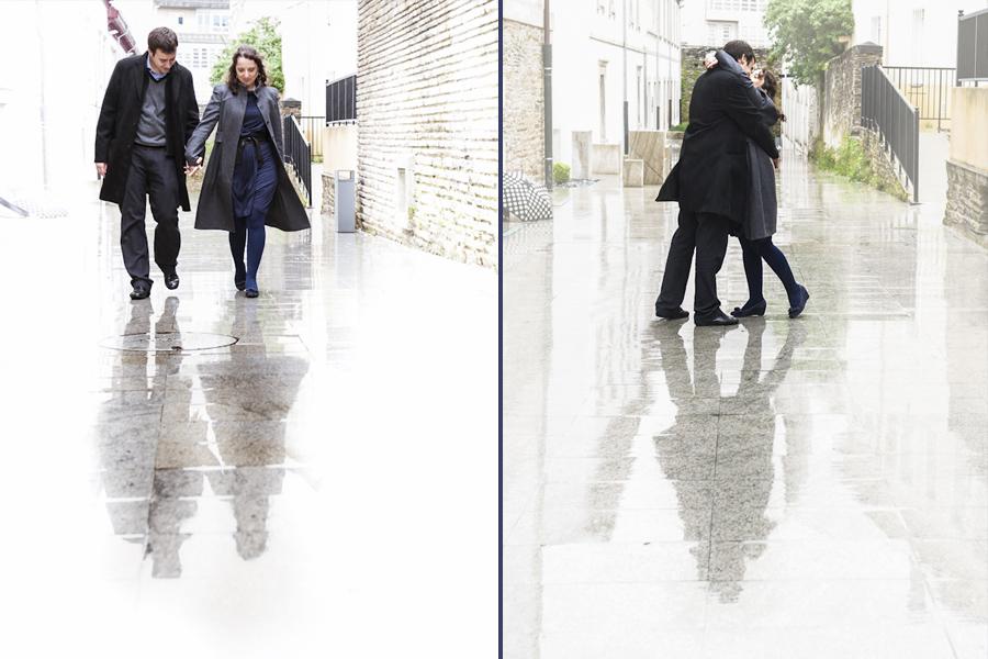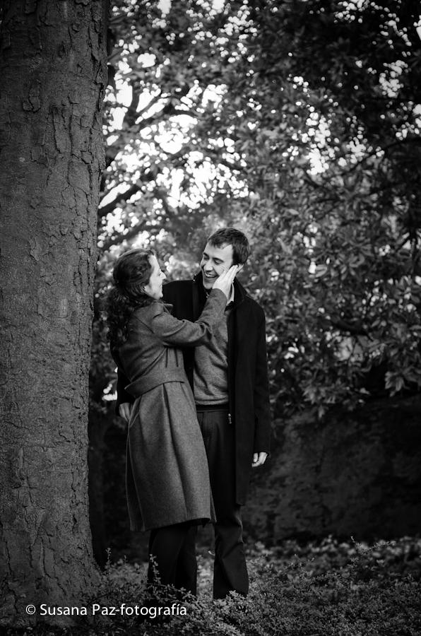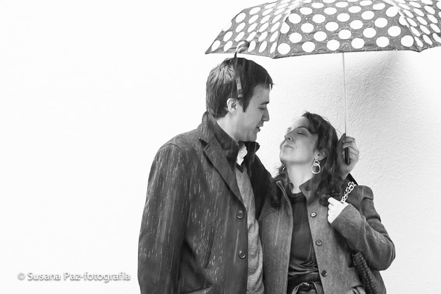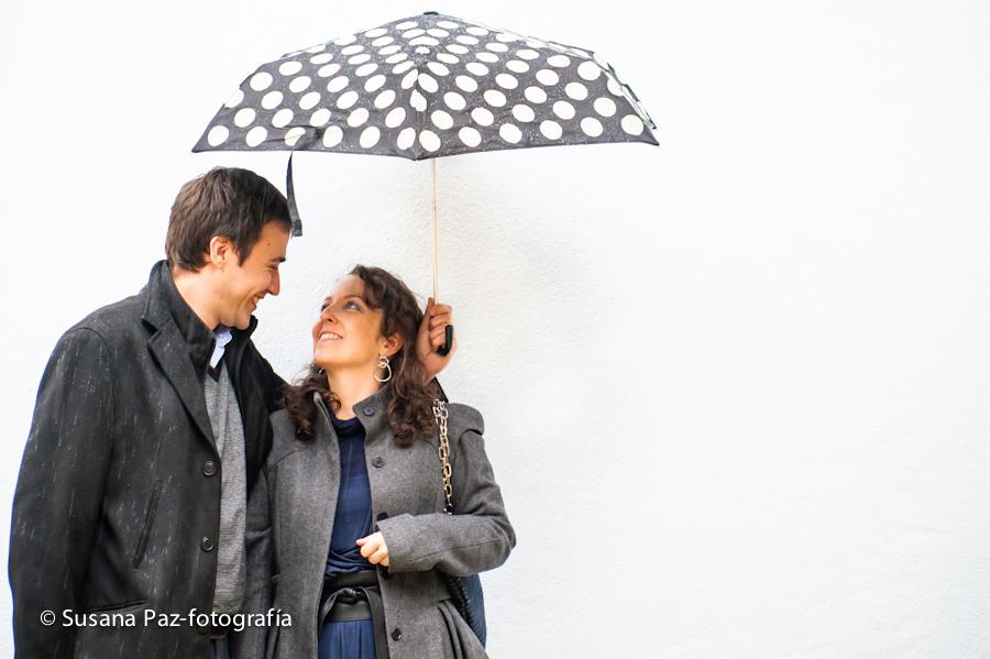 ¿Cómo hacer una preboda en Lugo en un día lluvioso y muy frío? Lugo es la ciudad amurallada de Galicia, la más antigua, misteriosa y llena de historia, con un color especial y una luz esquiva que se filtra entre los muros de piedra y las señoriales plazas. Hacia allí nos fuimos una tarde de marzo con la intención de hacer la preboda de Maria José y Miguel; y reconozco que fue toda una temeridad por nuestra parte. Durante todo el trayecto nos acompañó la lluvia y en el horizonte ni siquiera un claro de esperanza. Las opciones eran dos: posponer la sesión para otro día o arriesgarnos a fotografiar bajo la lluvia. Elegimos la segunda y decidimos pensar en positivo. San Pedro, que todo lo sabe, esta vez nos premió con intervalos de lluvia y sol, de modo que pudimos recorrer Lugo con la ayuda de otros dos protagonistas olvidados en esta sesión: Los paraguas de Maria José y Miguel.