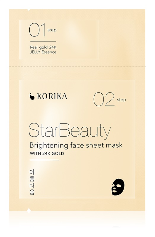 He encontrado esta de Korika StarBeauty, de novedad en Notino que la veo perfecta para una ocasión especial, ya que es una mascarilla en dos pasos para iluminar y unificar el tono de la piel con oro de 24k.