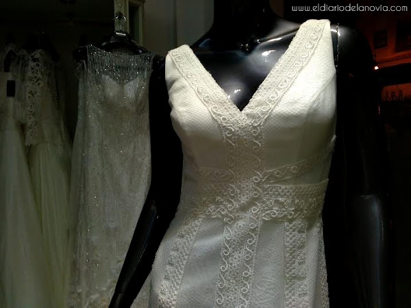 Esta nueva colección también destaca, como nos explicó Miquel, por los vestidos transformables, representando el cambio de la mujer: Mangas que se quitan y se ponen y cuerpos preciosos y complementos que se superponen permitiendo un cambio de look en un día muy especial.