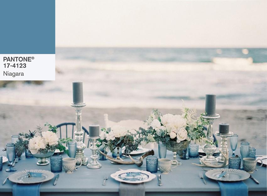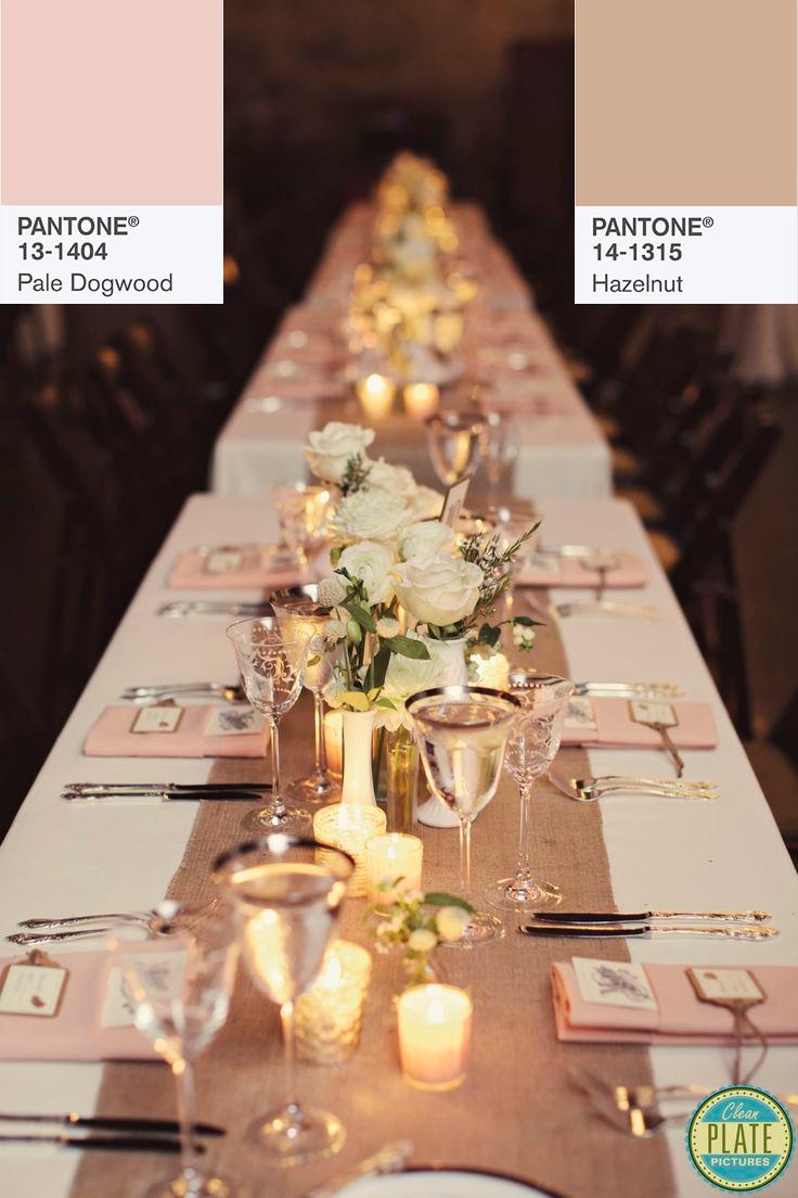 Los colores más delicados de la paleta Pantone 2017 se combinan a la perfección en esta mesa con toques plateados y cristalería grabada.