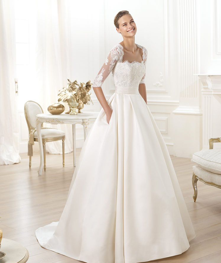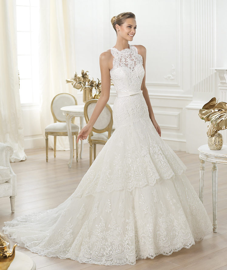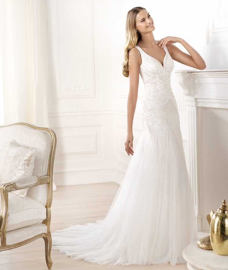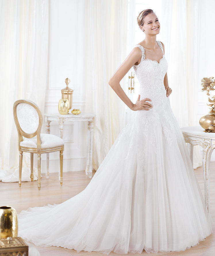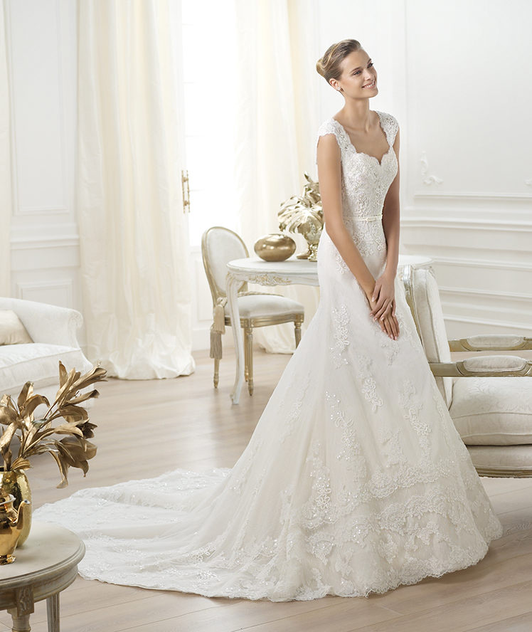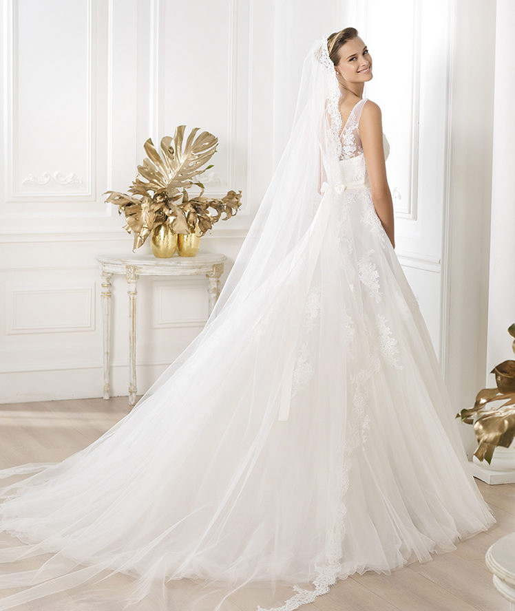 La colección COSTURA 2014 viene predominada por vestidos de novia con corte en A y apliques en encaje y pedrería en cristal. Podéis ver todos los modelos en http://www.pronovias.es/vestidos-novia-2014/costura-2014