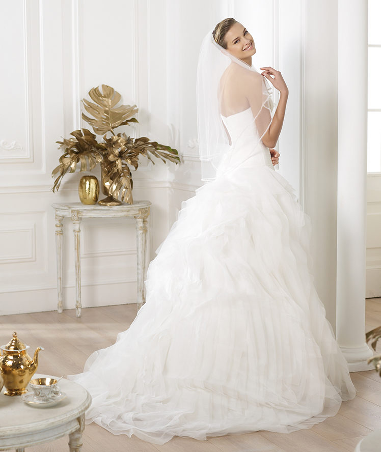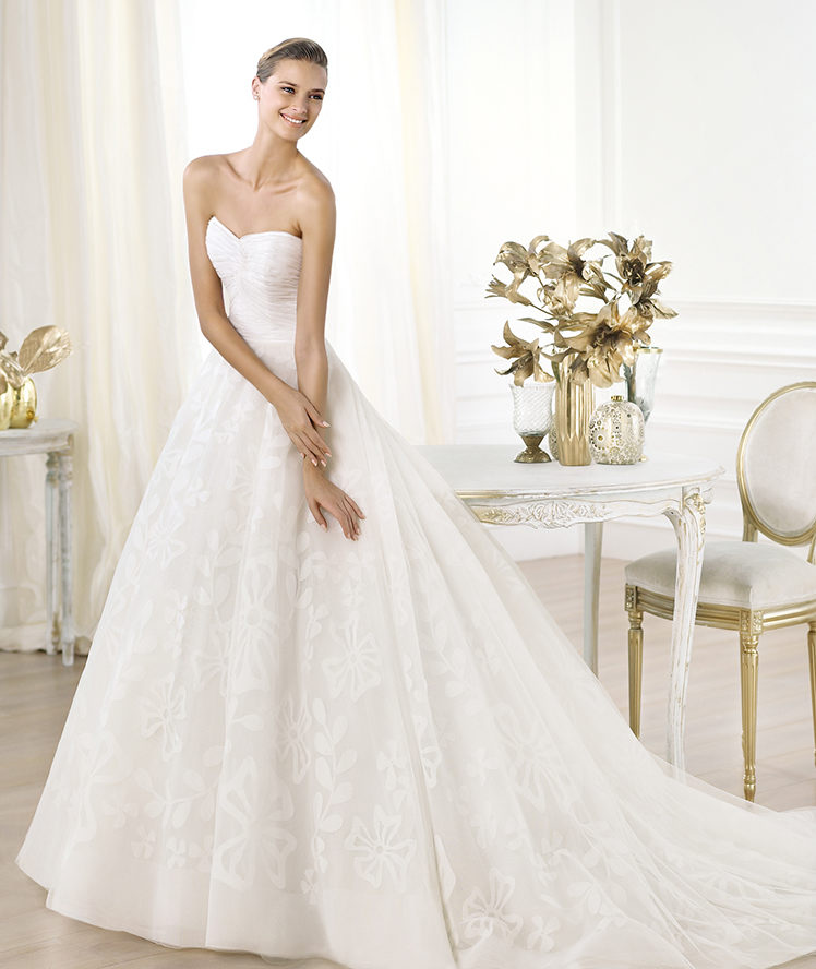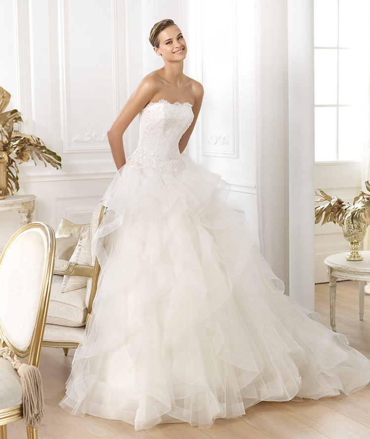 Su línea GLAMOUR 2014 predominan las faldas princesa en tul. Puedes ver la colección completa en http://www.pronovias.es/vestidos-novia-2014/glamour-2014