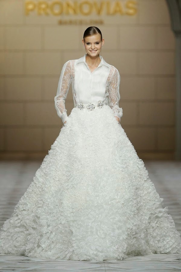 Fue un desfile que invitó al espectador a descubrir le sueño de la firma, así como las últimas tendencias en moda nupcial de las colecciones, Altelier Pronovias 2015: diseños completamente nuevos como los vestidos "separates", una apuesta fuerte por los diseños formados por cuerpo y falda; los vestidos joya donde la pedrería es la protagonista absoluta. El vestido camisero sigue siendo tendencia y una seña de identidad de la firma. En la nueva colección se han utilizado preciosos encajes franceses, chantillis, mikados, crepes, brocados, raso, raso mórbido y tul. El tul crea sinuosos juegos de transparencias en mangas largas, escote y espalda, creando sobre la piel un mágico efecto tatto.