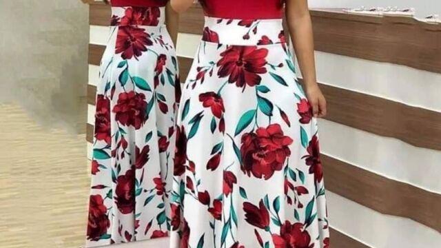 En la foto puedes ver como las modelos combina un vestido rojo floral con unas sandalias abiertas de plataforma bicolores (blanco y negro)