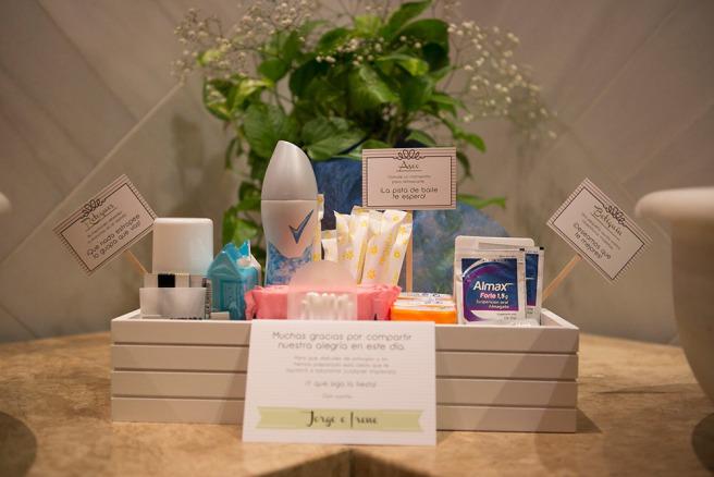 Kit de Emergencia. Nunca se sabe si lo vais a usar, pero preparad un neceser con analgésicos, aguja e hilo, algo para retocar el maquillaje y peinado, tiritas par las rozaduras de los zapatos, imperdibles, cepillo de dientes para después de la cena/comida…