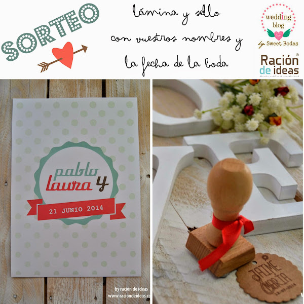 Y ahora una súper sorpresa? y es que Ración de ideas sortea junto a Sweet Bodas una lámina y un sellito personalizados con vuestros nombres y la fecha de la boda.