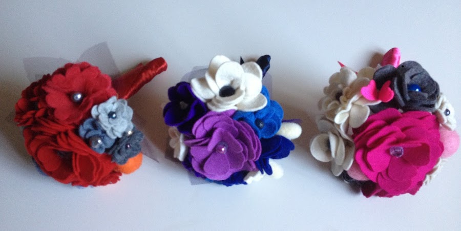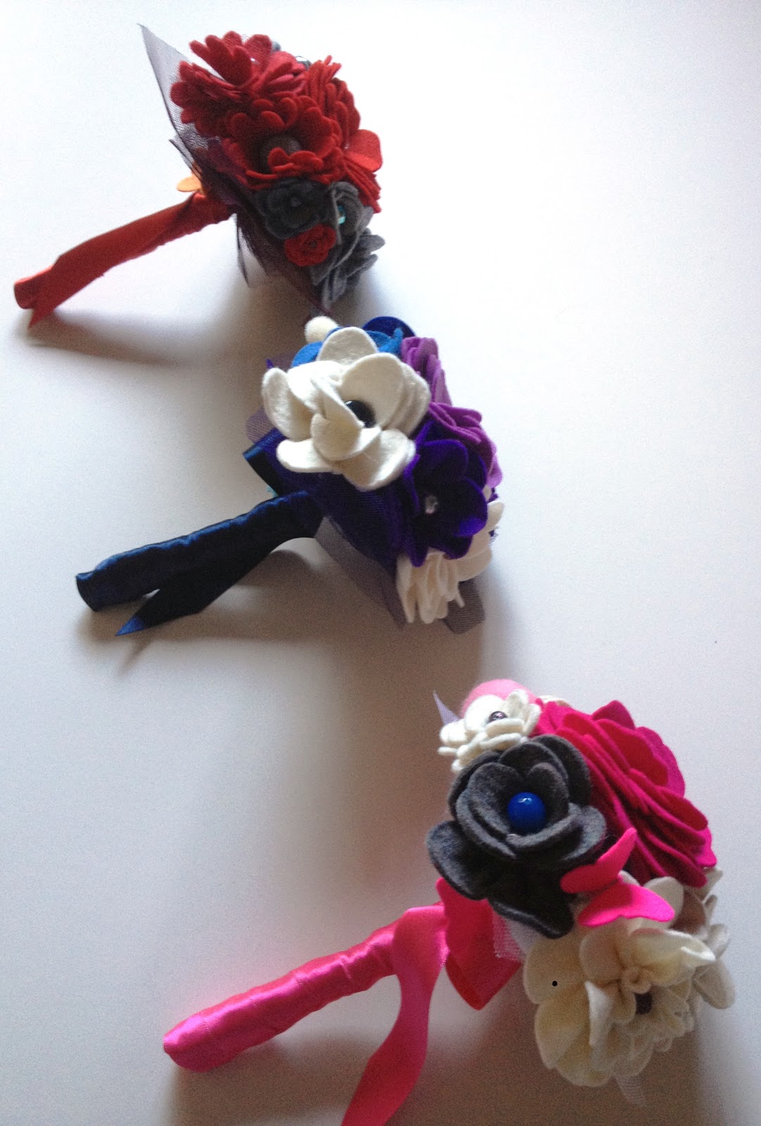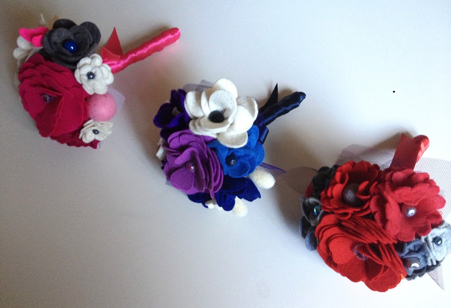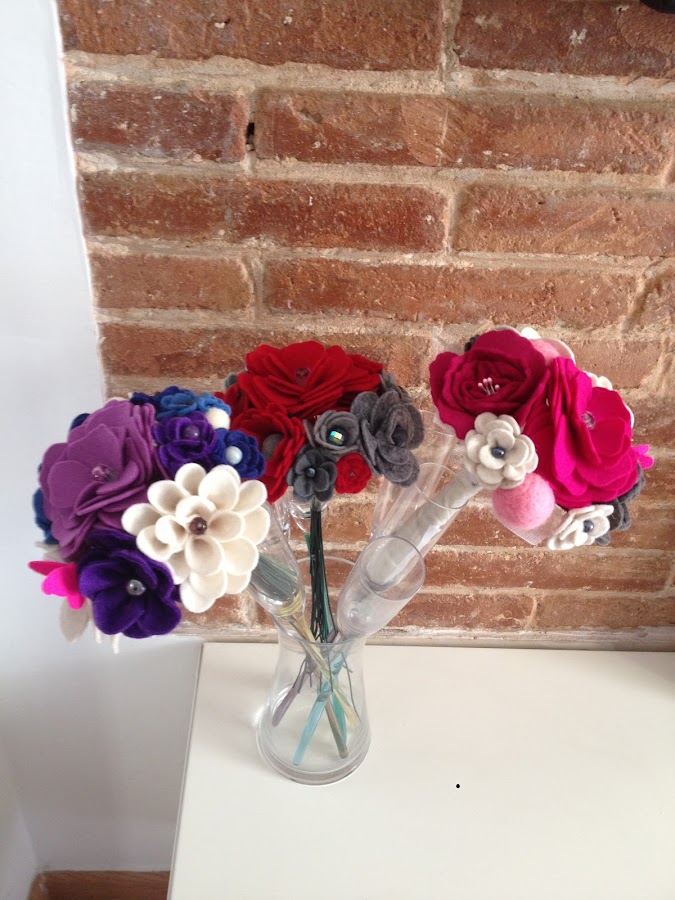 Me encantan como quedaron estos mini ramos, en fieltro y tul.