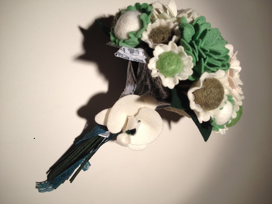 Al final se realizo este ramo, de flores y bolas de fieltro, rematado con puntilla.