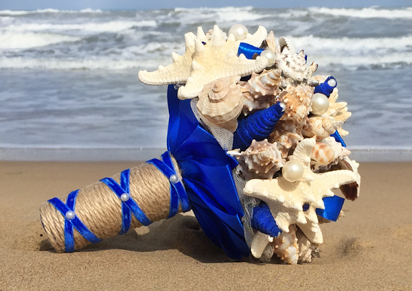 Si la novia, va a realizar su boda en la playa, por que no un ramo personalizado, con conchas y estrellas de mar, totalmente en concordancia, con el estilo de novia y boda .
