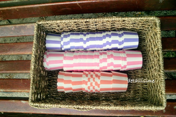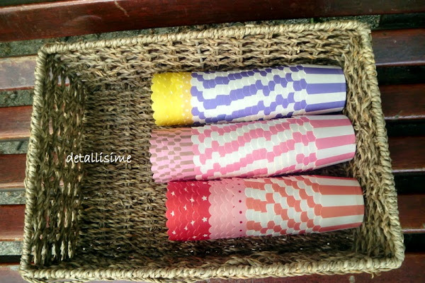 esta vez optamos por las rayas y por las flores en los mismos tonos que las tarrinas_cápsulas de rayas rosas y moradas...