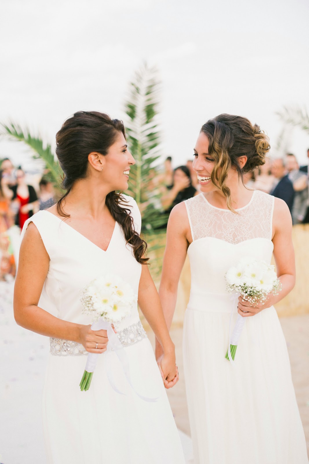 En toda boda, cada momento de la novia es especial, desde los preparativos hasta el baile, pero si tenemos una boda, que en vez de una, tenemos dos novias, dos vestidos, un enclave idílico, y una puesta de sol en pleno junio de Sitges, hace que se convierta en una BODA en mayúsculas.!!!