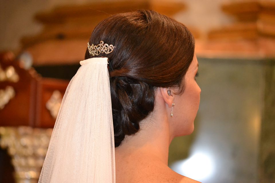 Por último está la opción del recogido lateral, por este opté en el post-boda, decidí cambiar de peinado y verme con dos looks distintos, además da un toque diferente a las novias. Puede ser totalmente recogido o medio.