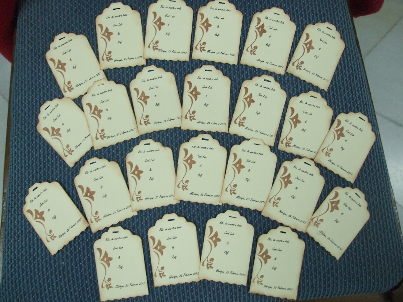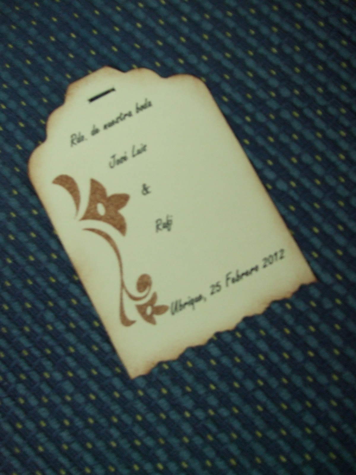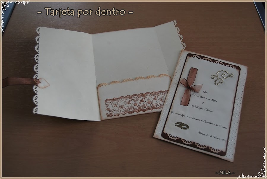 En segundo lugar le hice una tarjeta de bodas con el nombre de los Novios, el lugar de la ceremonia, la hora y la fecha.