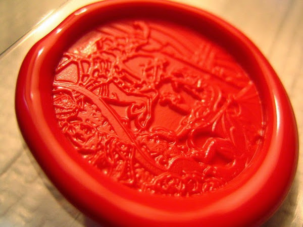 Lógicamente el sello con su grabado original a buril esta muy valorado y su coste el muy elevado. Nuestros colaboradores de Lacres Barcelona, unos enamorados de su trabajo, tubieron la idea de reproducir el sello "Llegenda de St Jordi" de Marcel Escofet de forma que pudiera regalarse para la Diada de St Jordi, como alternativa o complemento a la típica rosa y libro.