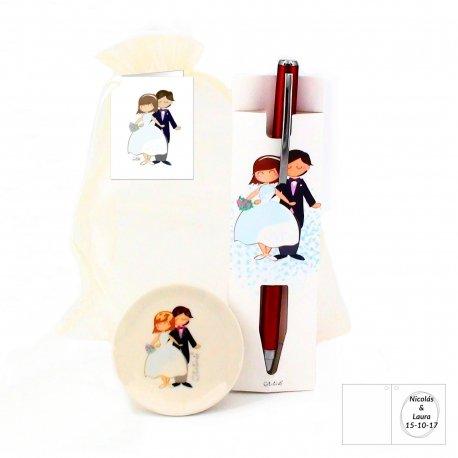 Para grabar en tus regalos vuestros nombres y la fecha del enlace, debes añadir al carrito el siguiente producto, la misma cantidad que el regalo que quieres personalizar. En el propio producto de grabación láser te pedimos que nos indiques el texto que quieres grabar.