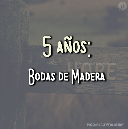 Quinto Aniversario: "Madera". Significa una relación sólida, sin duda es una muesca importante en la vida en común de los recién casados. Los regalos tradicionales para este aniversario: mobiliario, una caja de vinos o una escapada.