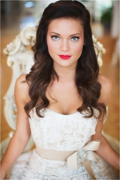 Aquí os dejo unas cuantas imágenes sacadas de pinterest de novias con los labios pintados de rojo. Como veréis este color de labios va bien con cualquier tipo de novia.