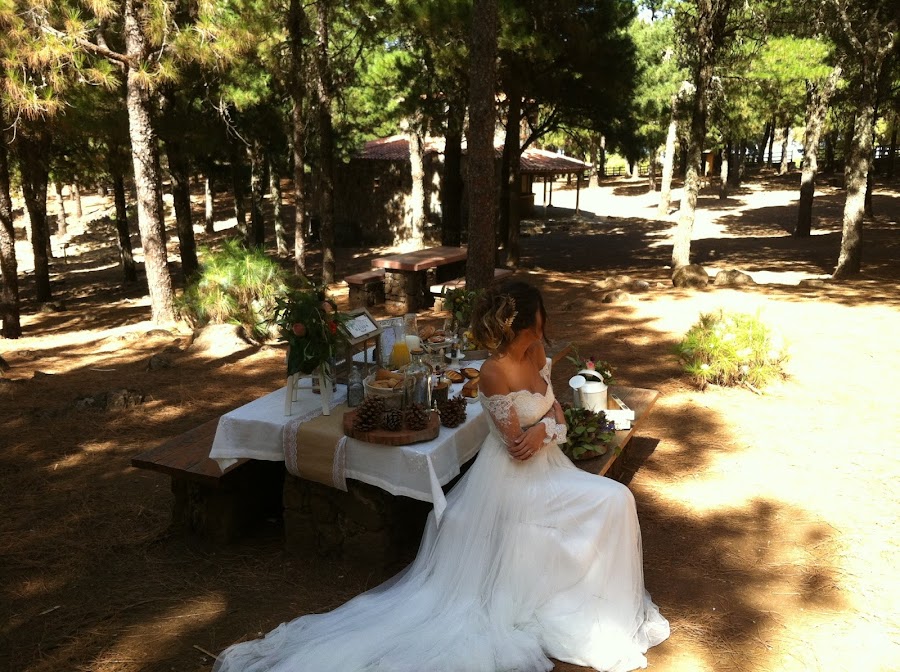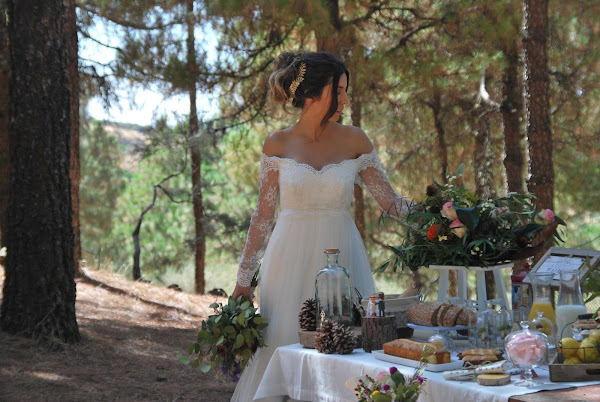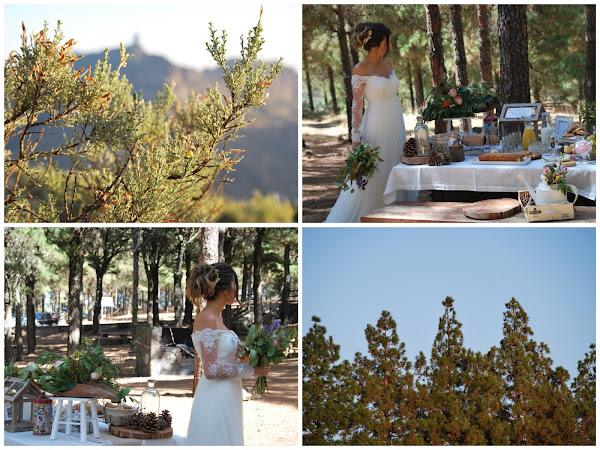 El último escenario, tuvo lugar en los alrededores del Parador a más de 1.500 metros de altitud y con magníficas vistas al Roque Nublo, uno de los símbolos más emblemáticos de la isla. En esta ocasión, Marta lució mi vestido preferido, el modelo DAC un vestido georgette con detalles en chantilly y pedrería.