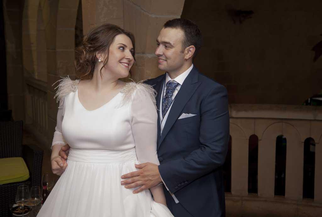 Aunque organizar una boda no siempre es tarea fácil, los novios tenían claro que su boda tendría lugar en el Castillo Bonavía, lugar donde se casó el hermano del novio y también, punto intermedio entre ambas familias (Tudela y Zaragoza). Pero fueron sus jardines, los salones y la gastronomía del lugar lo que definitivamente sedujo a estos novios.