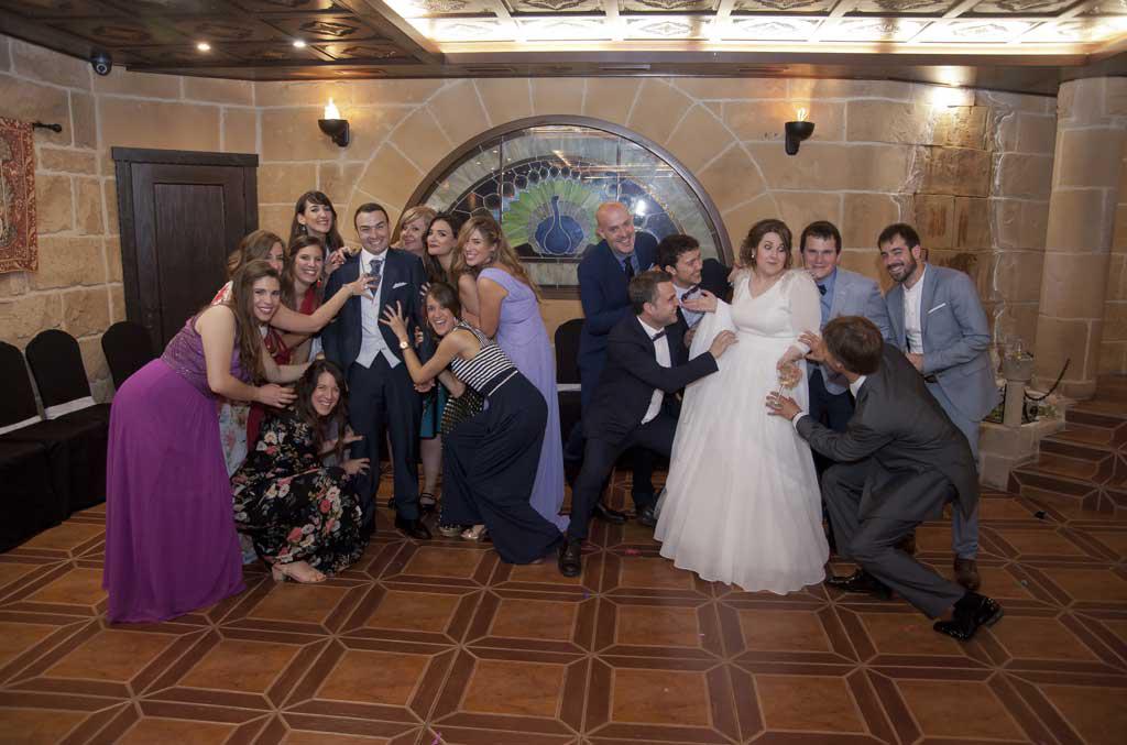 Y por último, un gran banquete nupcial, donde no faltó un show cooking de jamón, una gran tabla de quesos y deliciosos aperitivos de boda (¡escogidos a conciencia!) durante el momento previo del cóctel, para pasar luego a una deliciosa cena con “la combinación perfecta entre foie y caramelo, seguida de un plato de pescado con hongos, sorbete y ternasco al más puro estilo de Aragón. A ello le siguió el postre, la barra libre y la recena”