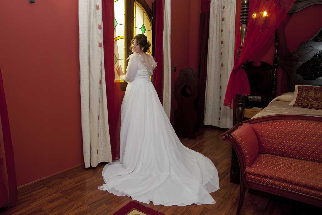 “El vestido de novia fue obra de Victoria Imaz, una atelier de Pamplona que hace diseños únicos con alma. El proceso de creación fue divertido y compartido con las personas más especiales: mi madre, mi hermana y mis primas. También con Yahaira y su equipo, que no dejaron de apoyarnos y de darnos confianza para visualizar el resultado final.Partimos de combinaciones existentes, ideas que no podían faltar y buenos consejos. Muchas pruebas después, arreglos de última hora y plumas aladas ¡ahí estaba EL VESTIDO!”