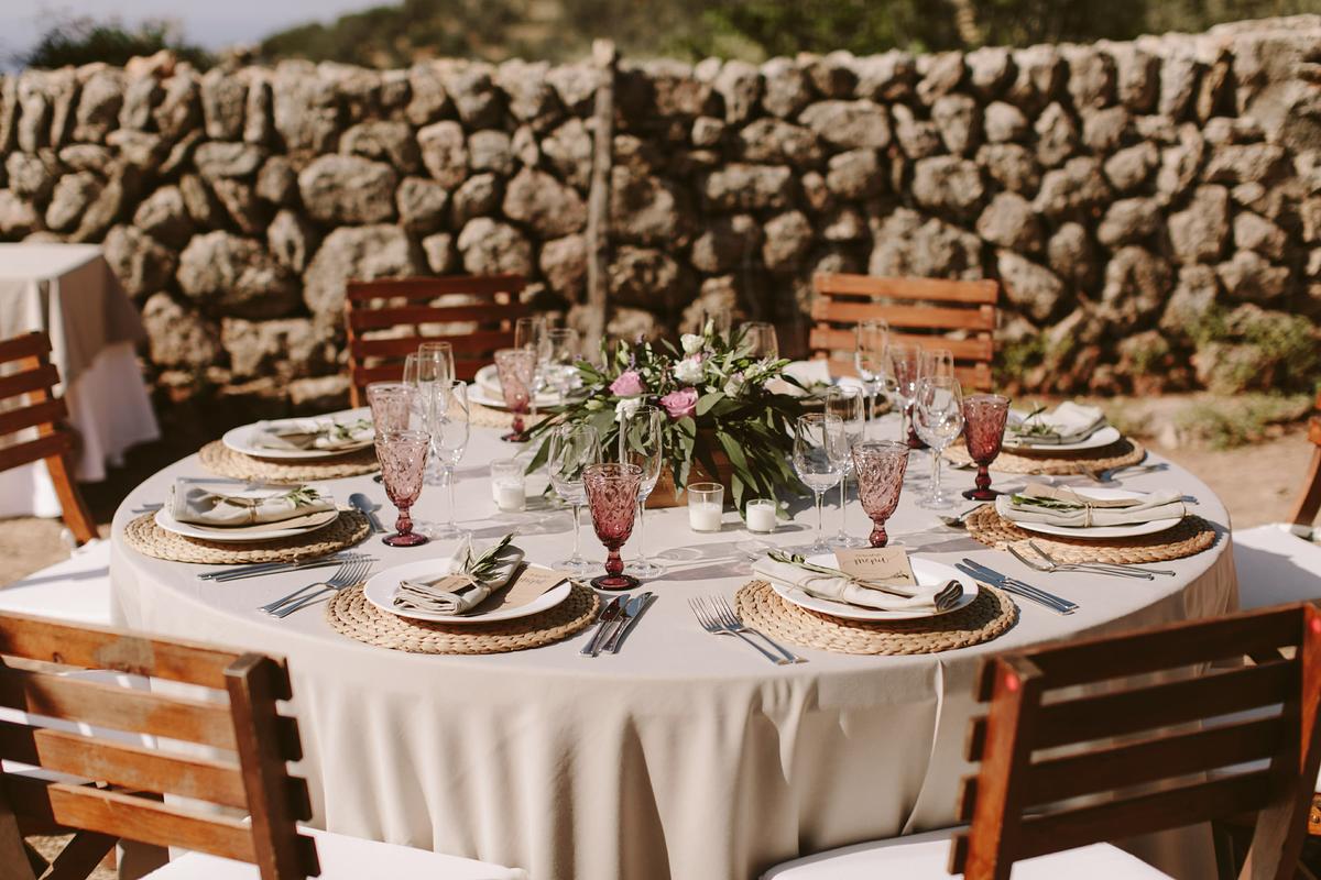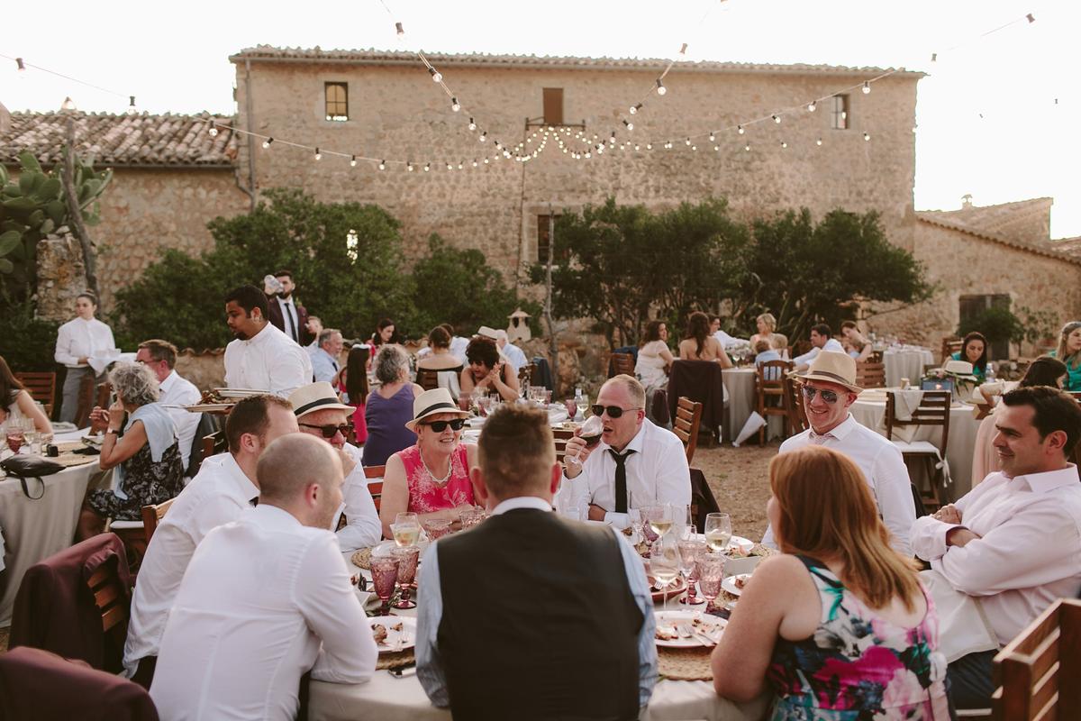 Para la cena los novios querían un toque español por lo que optaron por el menú a compartir; los platos principales eran también a compartir: barbacoa, pescado a la mallorquina, porcella amb patatons y ensalada entre otros platos típicos de Mallorca todo servido por el catering Tot a Punt.