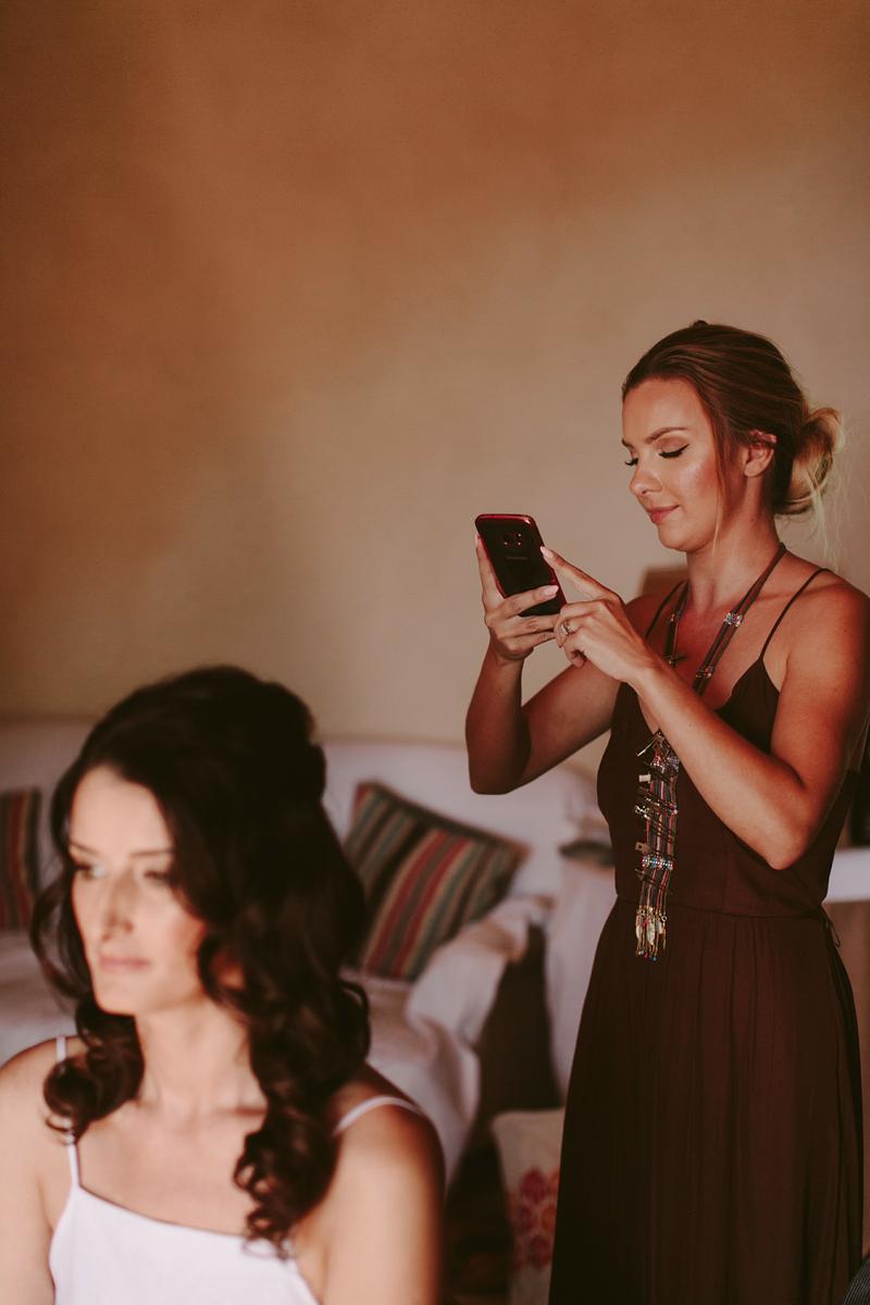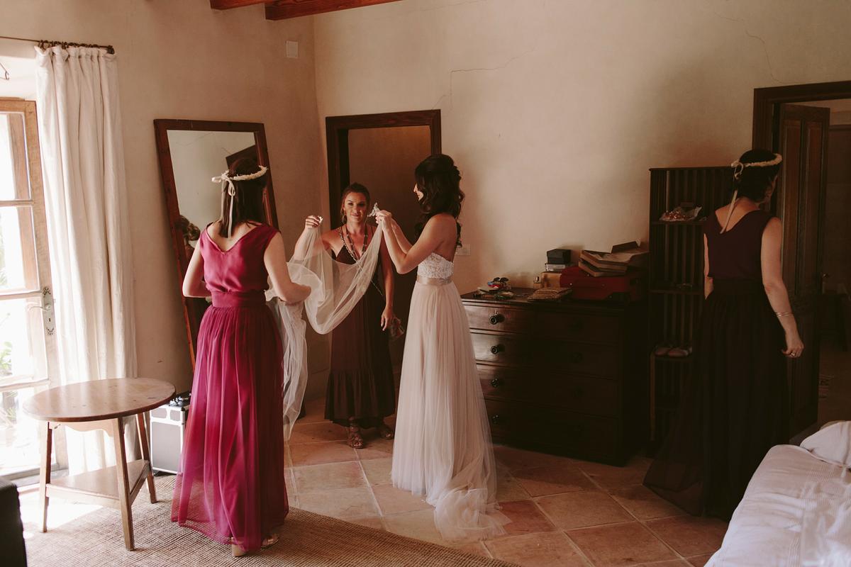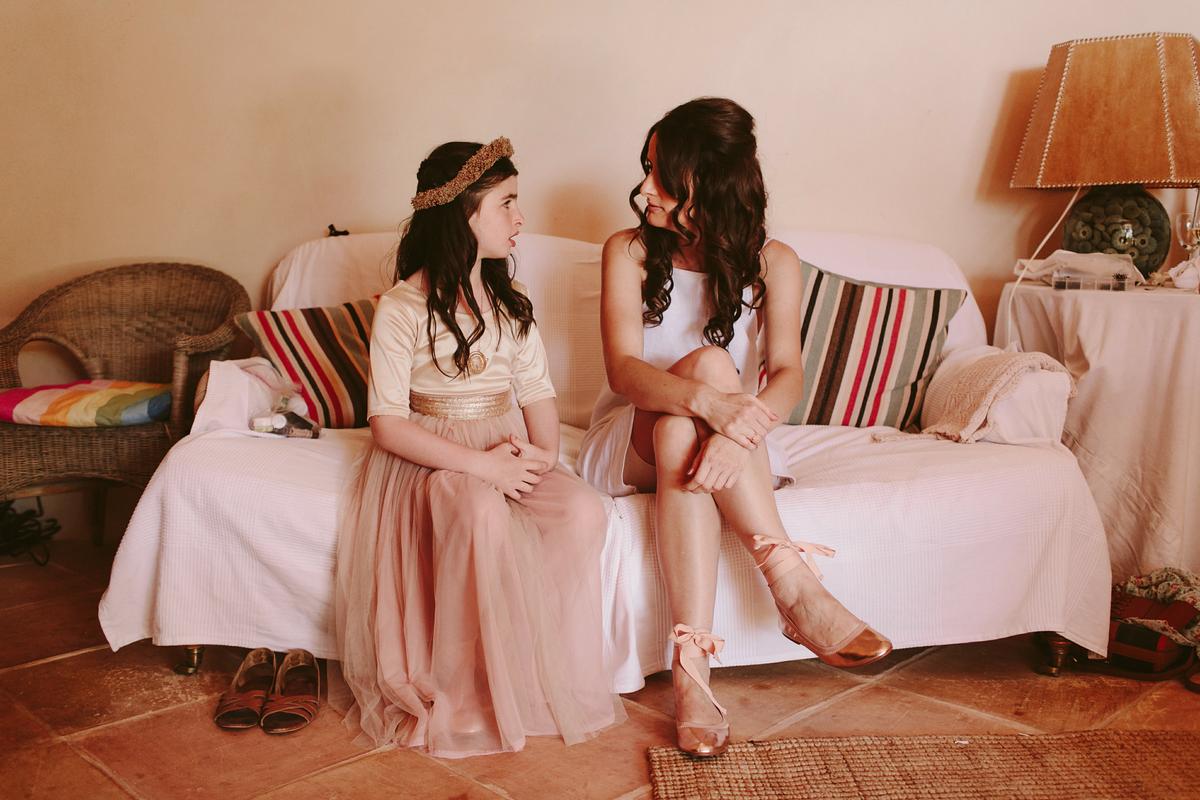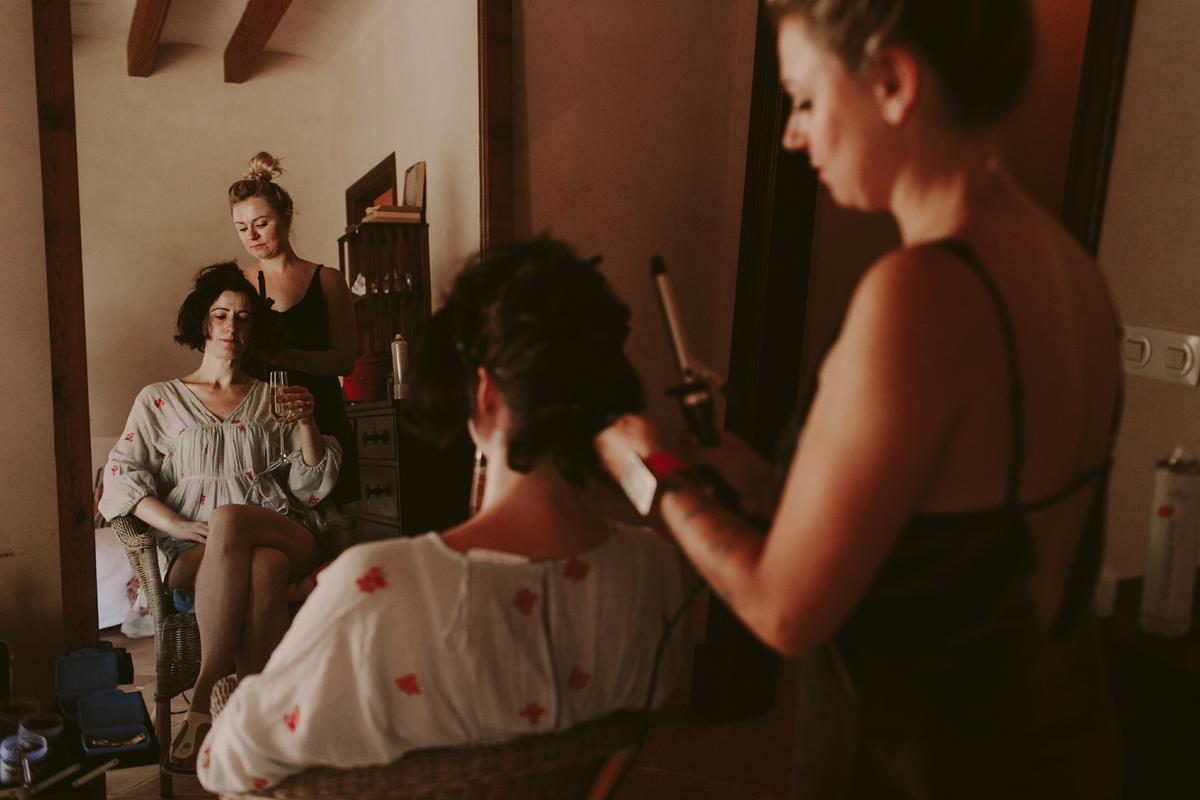 Todos los preparativos se realizaron en la misma finca en un entorno muy relajado. Esa era la principal clave: iba a ser una slow wedding donde todo iba a suceder sin prisas, sin estrés y muy familiar…