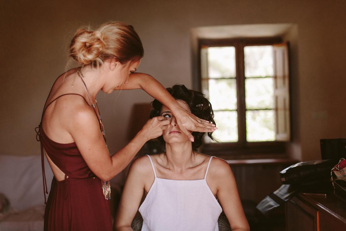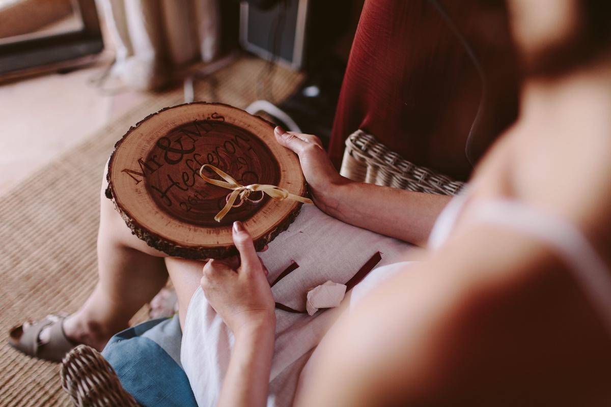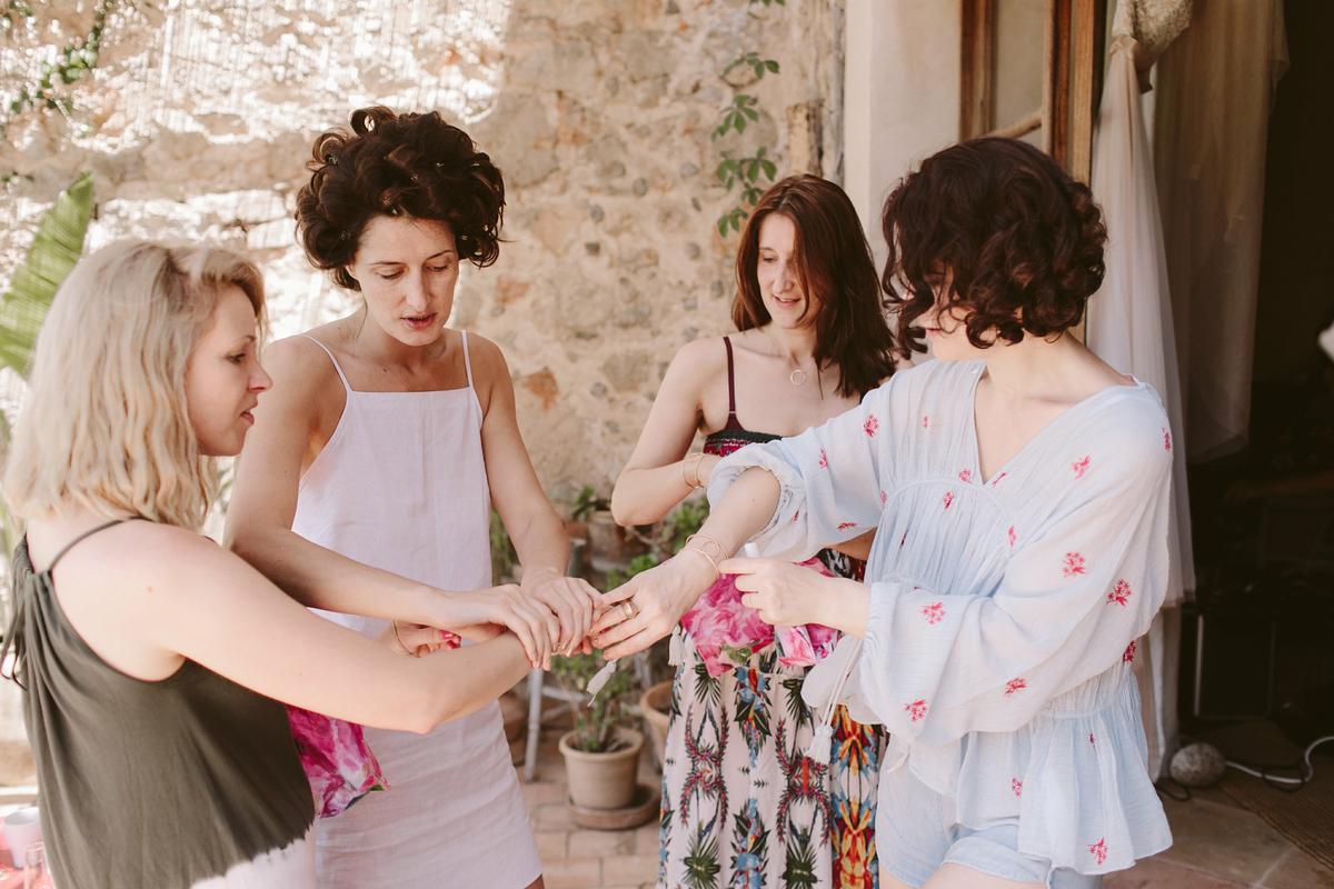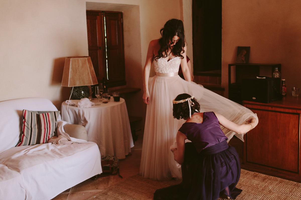 Todos los preparativos se realizaron en la misma finca en un entorno muy relajado. Esa era la principal clave: iba a ser una slow wedding donde todo iba a suceder sin prisas, sin estrés y muy familiar…