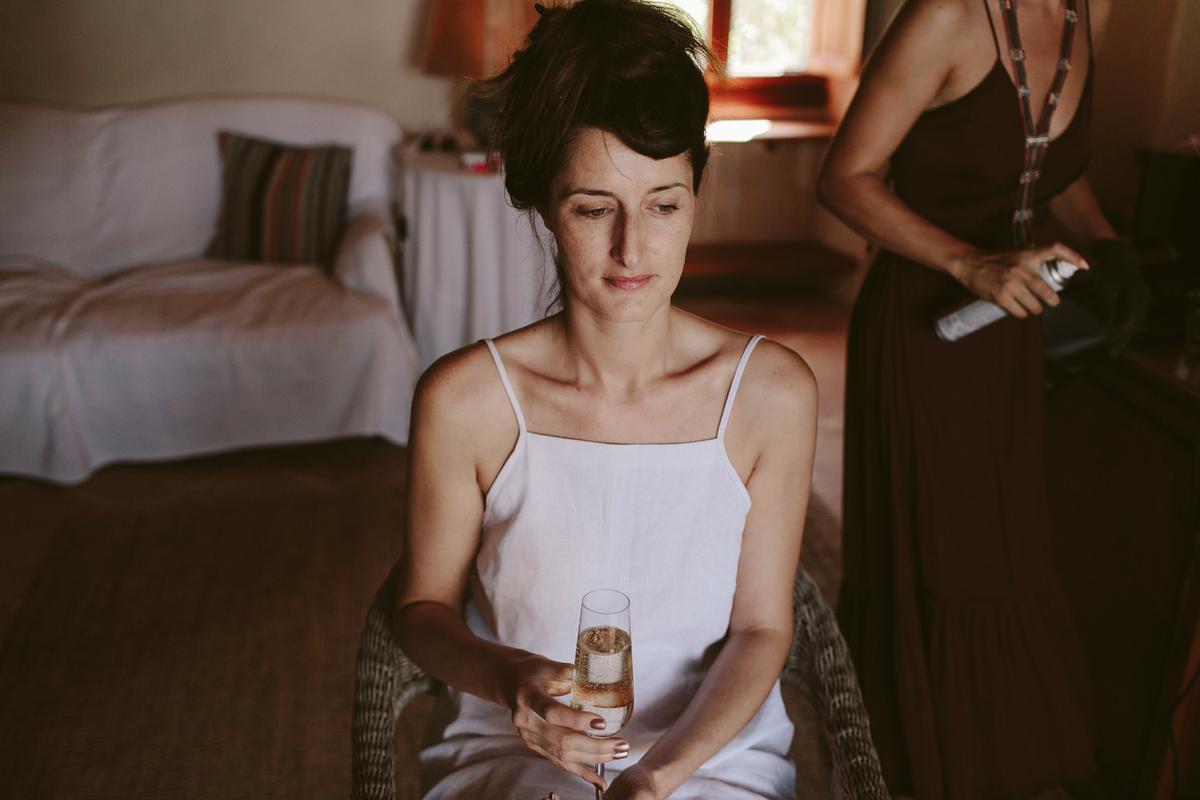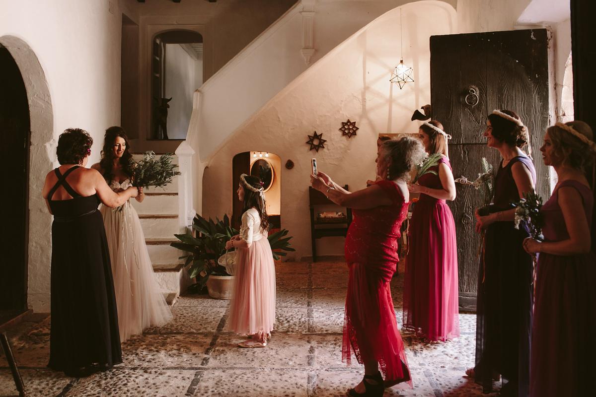 Como os decimos fue una boda muy tranquila y como tal la disfrutaron todos los presentes…¡con champán y charlas familiares! Una vez que Sandra estuvo lista y preparada, sus damas de honor y mujeres de la familia fueron testigos de las primeras fotos de la novia ¡estaba muy, pero que muy guapa!