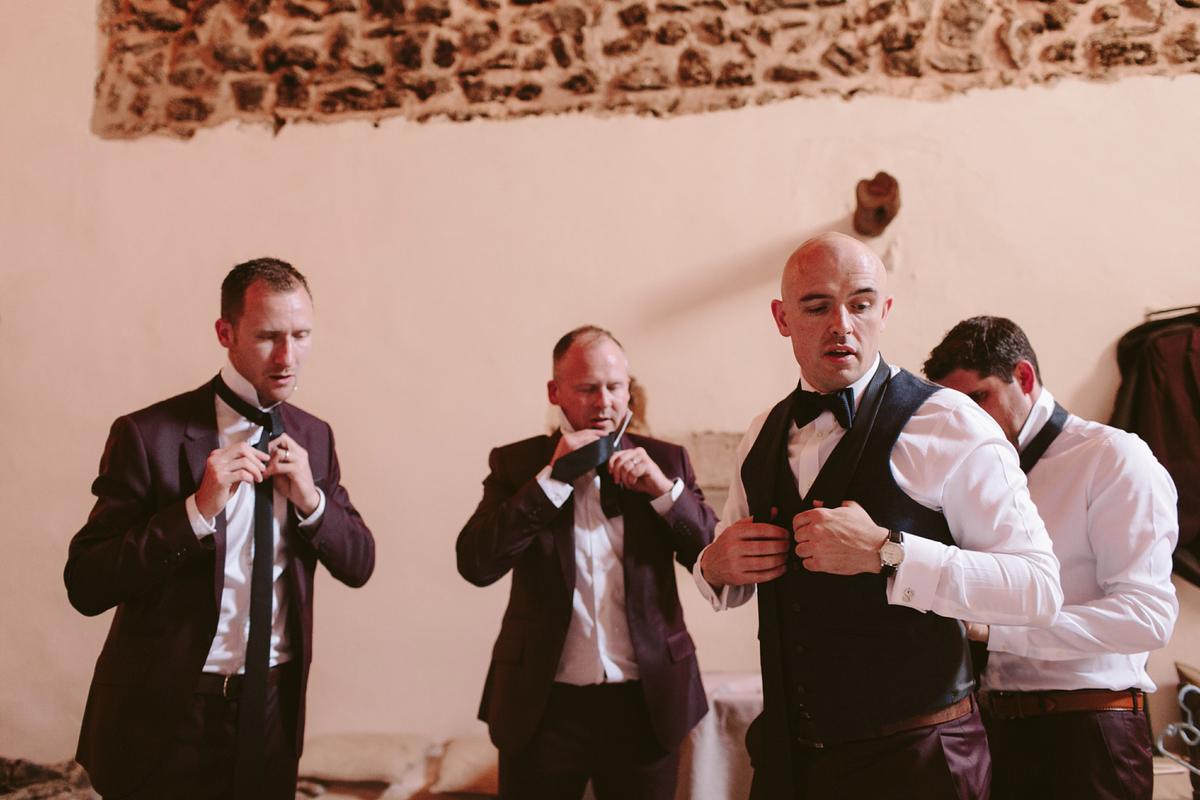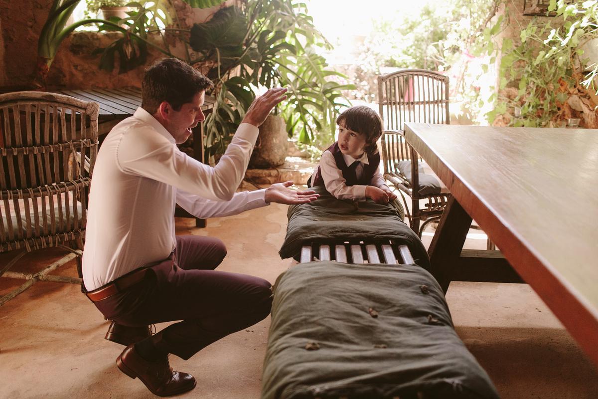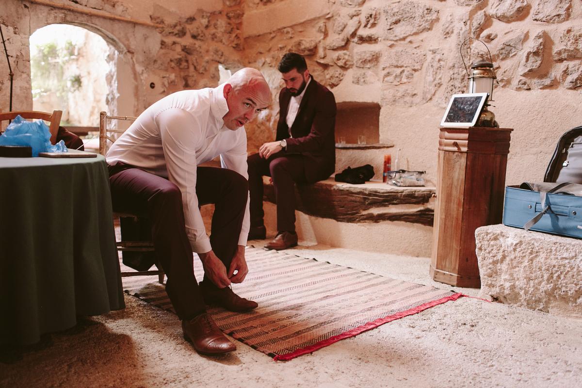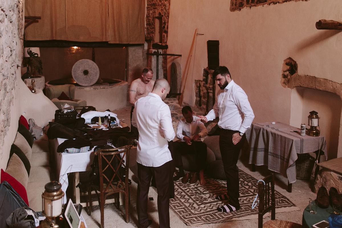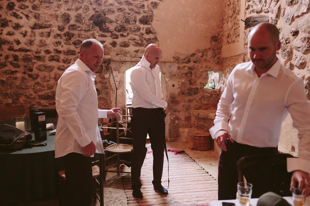 El novio, Mike, hizo lo propio en otras dependencias de la finca. ¡Iba a estar a la altura de su preciosa novia y sus amigos le iban a ayudar en este momento! Unos nervios previos que se aplacaron con risas y alguna copa. Su hijo le acompañó junto con “los hombres” mientras que su hija estaba junto a su madre arreglándose junto a las chicas mayores..!