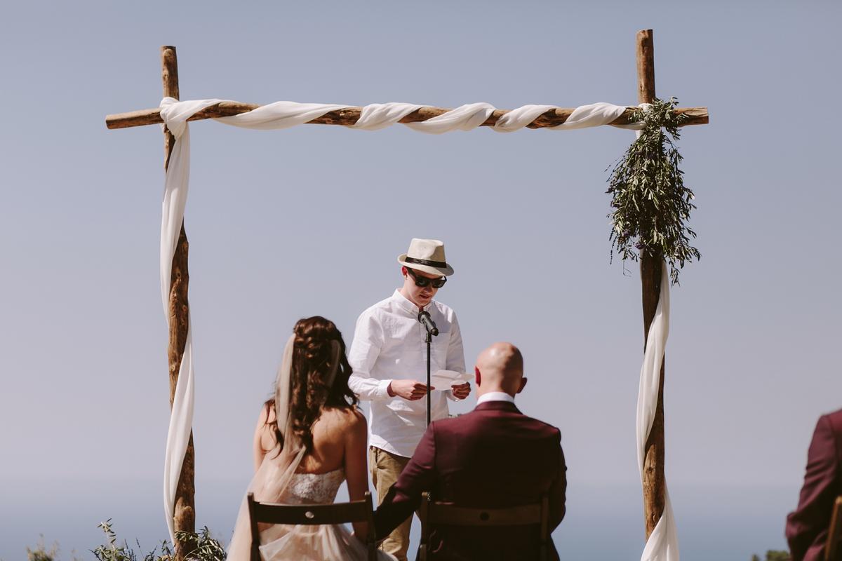 Fue exactamente como habían deseado. En un entorno idílico, tranquilos y lleno de buenas vibraciones. La boda fue ambiente musicalmente por unos amigos que pusieron la banda sonora al momento. Hubo varios discursos de amigos y familiares y como cabe esperar ¡sonrisas y lágrimas de emoción!