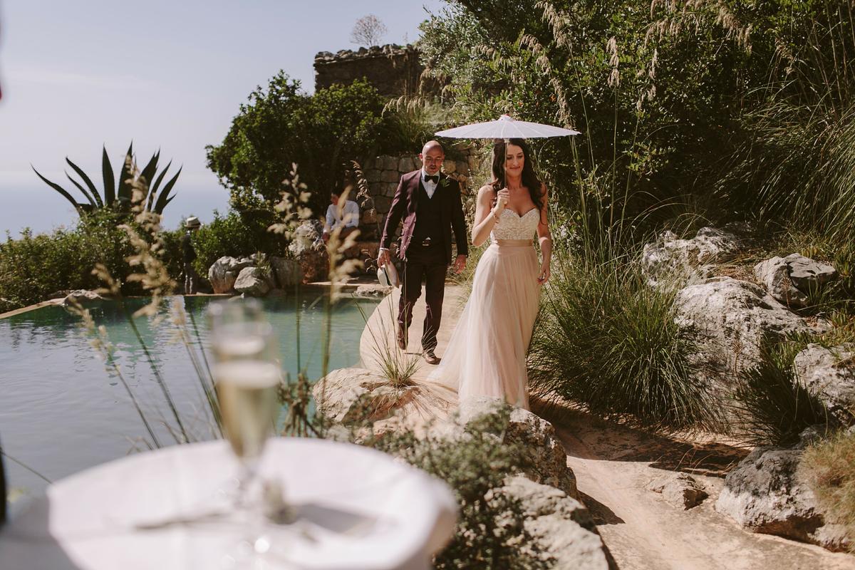 Y por supuesto sus hijos, un niño y una niña, lo iban a disfrutar mucho junto a sus padres. Para comenzar diremos que esta pareja buscaba un poco el ambiente que confiere la montaña ya que deseaban evocar a Galicia, pero sin renunciar a unas privilegiadas vistas al mar, y todo ello con la intimidad y tranquilidad. Tenían claro que la boda se celebraría en España, y Mallorca, junto a su preciosa Serra de Tramuntana (patrimonio de la humanidad), fueron las elegidas como testimonio de este día esperado.