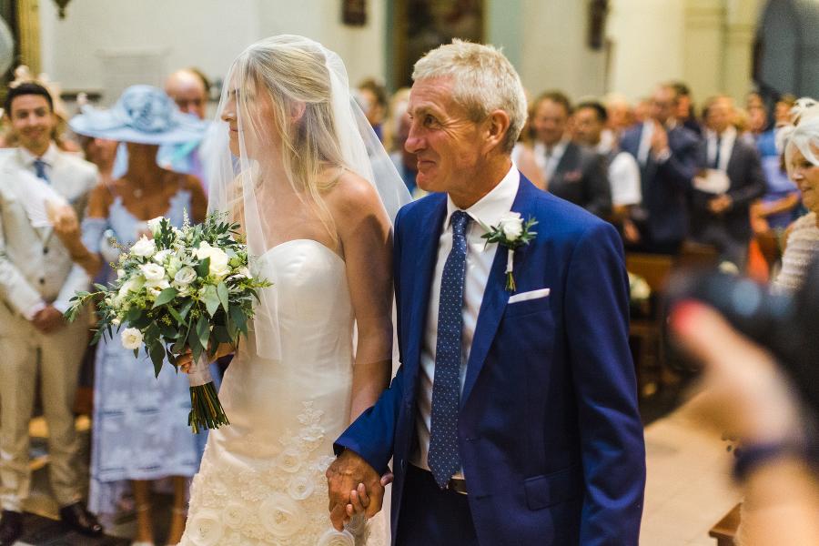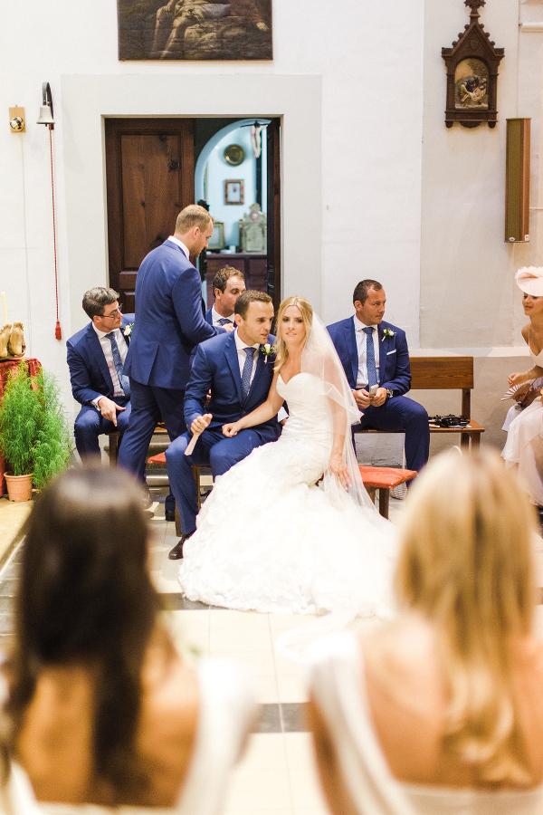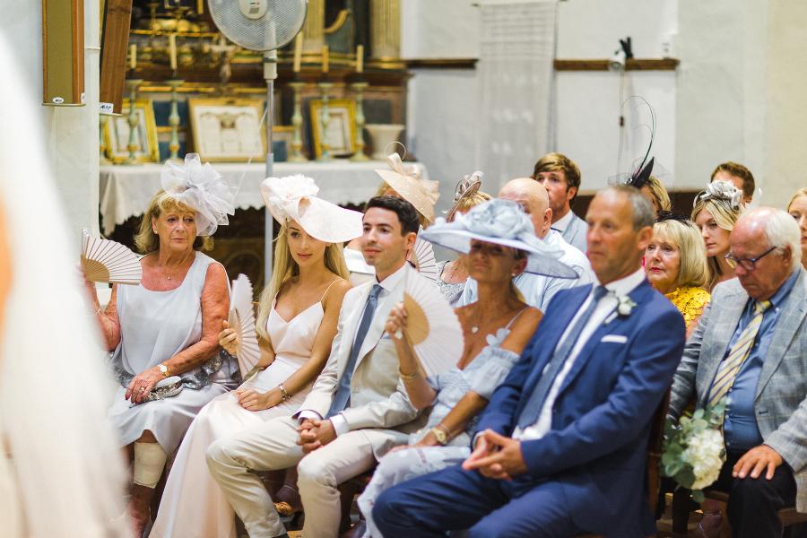Sarah y Adam optaron por una tradicional ceremonia en la iglesia del pueblo. Todos los invitados estaban muy elegantes. Las damas con tocados, pamelas y espectaculares sombreros, ¡a nadie del pueblo le pasó desapercibida esta boda de ensueño! La novia entró del brazo de su padre y estuvo relajada y muy sonriente durante todo momento. Los ojos de los novios radiaban felicidad ¡y eso fue muy contagioso y emocionante!