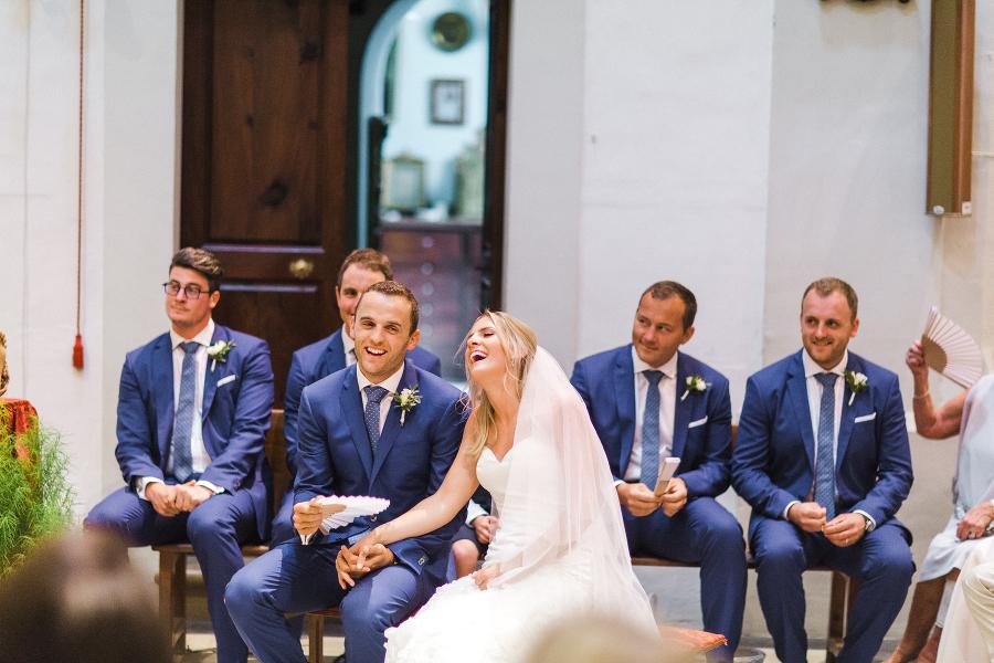 “Mallorca es un lugar muy especial para nosotros porque mis padres han sido propietarios de una casa en Fornlautx desde que era pequeña, así que casarnos allí fue muy especial para nosotros, ya que visitamos la isla con frecuencia durante las vacaciones. En nuestra opinión, es el pueblo más encantador y lleno de belleza. Tuvimos la suerte de encontrar a Marga de Moments para planificar nuestra boda, ella sabía cuánto nos gustaría casarnos en la iglesia de Fornalutx porque significaba mucho para nosotros y la ventaja adicional era que estaba a menos de un minuto, a pie, de nuestra casa. Además, la iglesia, es realmente impresionante, antigua, llena de carácter y encanto. Así que Marga se fue a buscar el lugar perfecto para la recepción. Nos enseñó, una preciosa e impresionante finca justo encima del pueblo y tan pronto como llegamos y miramos alrededor sabíamos que era el lugar para nosotros.”