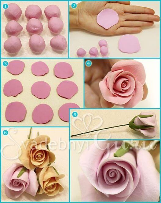 Como nota de color, puedes añadir unas flores de pasta de goma para decorar. Podrás elegir entre mantener el color pastel o hacer unas flores que realmente destaquen, por ejemplo, con un tono morado, rosa fuerte, rojo. El tipo de flor puedes personalizarlo con el ramo de la novia o bien alguna flor que le guste mucho.