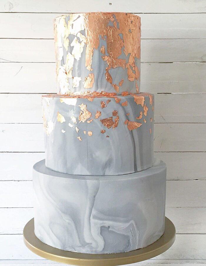 Las tartas de boda, al igual que la organización del evento han evolucionado. Aunque sigue estando muy demandada la tarta tradicional con flores, las novias más modernas están optando por otros estilos como: las tartas geoda, geométricas (art deco), efecto plumas, decoraciones con wafer paper, encaje a juego con el vestido de novia, marmoleada con pan de oro …