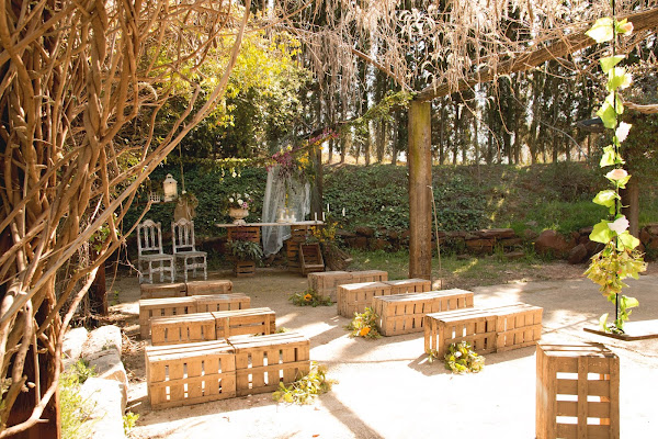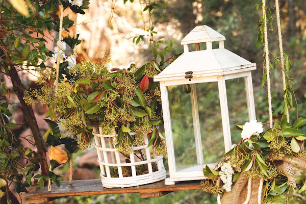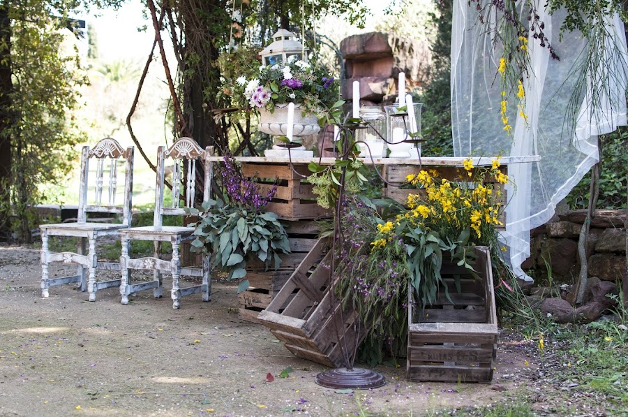 ¡Fijaos en este rincón tan cuco! Como ya sabéis, en BodasCucas somos unas enamoradas de la decoración rústica, nos encantan las bodas al aire libre, los farolillos y sobretodo las cajas de madera con sus infinitas posibilidades, así que la deco de este shooting... ¡No puede gustarnos más!