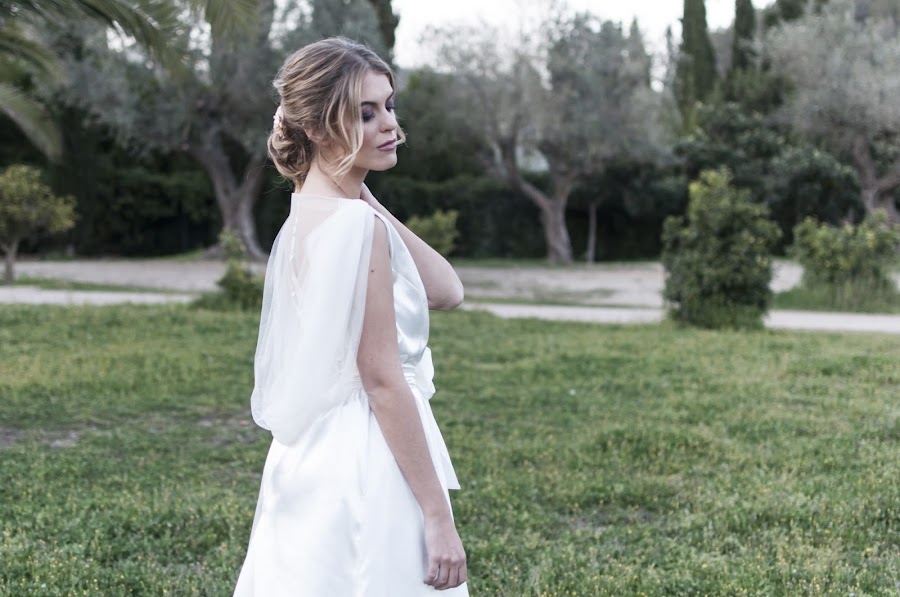 Tenemos que confesar que el último de los looks... ¡Es nuestro favorito! Un diseño en raso de seda con una delicadísima espalda de tul bordado que combinaba a la perfección con el recogido. Sin duda una opción ideal para las novias más románticas.