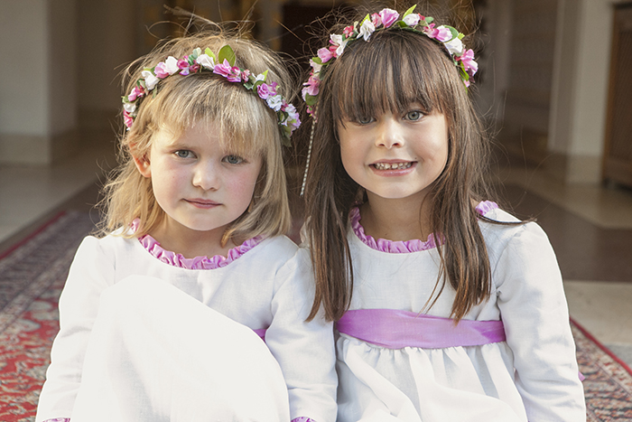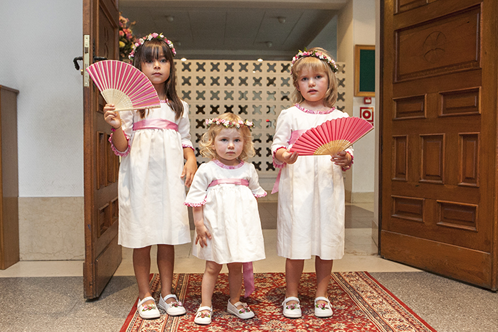 My flower girls where Antoines nieces, that where so cute with white and pink dresses and crown flowers on the same shades as the dreses.Their shoes where decorated with the same flowers of the crowns. It was my mum who took care of all those details, and the result was just perfect!