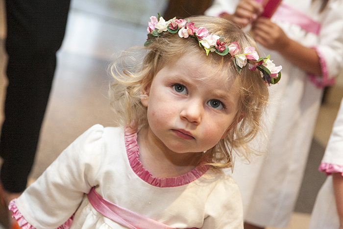 Las damitas que me acompañaron hasta el altar fueron las sobrinas más pequeñas de Antoine, que estaban guapísimas con vestidos blancos y rosas y coronas de flores en los mismos tonos que el vestido, los zapatos estaban decorados con las mismas flores que las coronas. Mi madre fue la encargada de hacer las coronitas, y la verdad quedaron preciosas!