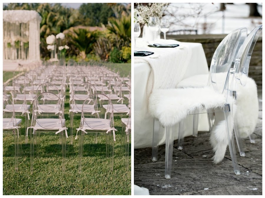 Aunque hay personas que le ponen algún tipo de decoración ya sea floral, una guirnalda o un simple cojín, personalmente creo que las Ghost chair no necesitan de ningún tipo de adorno. Al ser transparentes, visualmente, dan sensación de amplitud por lo que las recomiendo para bodas íntimas o en espacios pequeños.