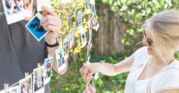 La Boîte à Déco incluye entre 100 y 250 fotos en formato polaroid que os permitirá personalizar y decorar vuestra boda. Junto os incluye 250 pincitas y una cuerda de 5 metros para poder colgarlas, para así poder decorar con vuestros momentos preferidos algún rincón de vuestra boda. Yo lo hicé asi, en un rincón del aperitivo colgué fotos de todos los invitados, cada uno se llevó un recuerdo de este de día para su casa.