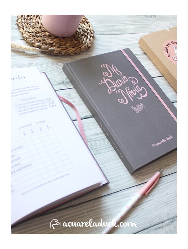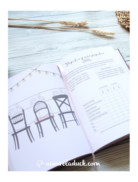Y hechas las presentaciones... ¿Queréis saber lo que Acuarela Duck ha preparado para el sorteo? Pues es precisamente una de las "7 ideas originales para regalar a la novia" que os presentamos hace un par de semanas: ¡¡¡¡Un diario de Novia!!!! Para esas novias que continuamente tienen pesadillas con olvidar algo, para las organizadas o las novias desastres, para las de boda de toda la vida o para aquellas que les pilla por sorpresa, para las tradicionales o las más alocadas. Mi diario de novia es un libro-diario-agenda donde se guiará a la novia por todos los detalles que una boda conlleva para que no se le olvide nada.