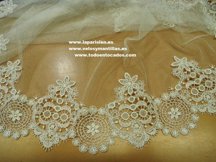 Sin más dilación.... ¡¡Vamos a desvelar como es el estupendo premio!! Este velo de novia, confeccionado en tul sedoso con terminación de encaje en color blanco roto. Os dejamos con unas imágenes: