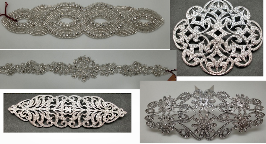 Y todo tipo de accesorios como broches y aplicaciones de pedrería para el vestido: