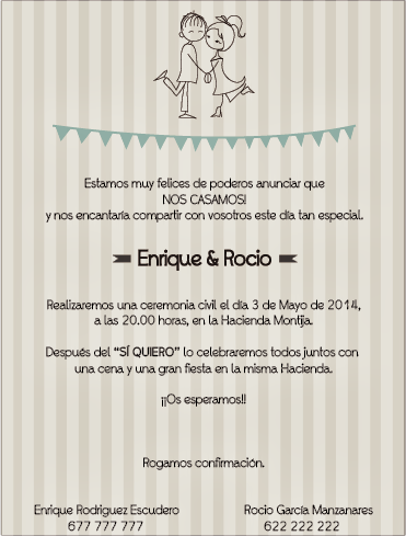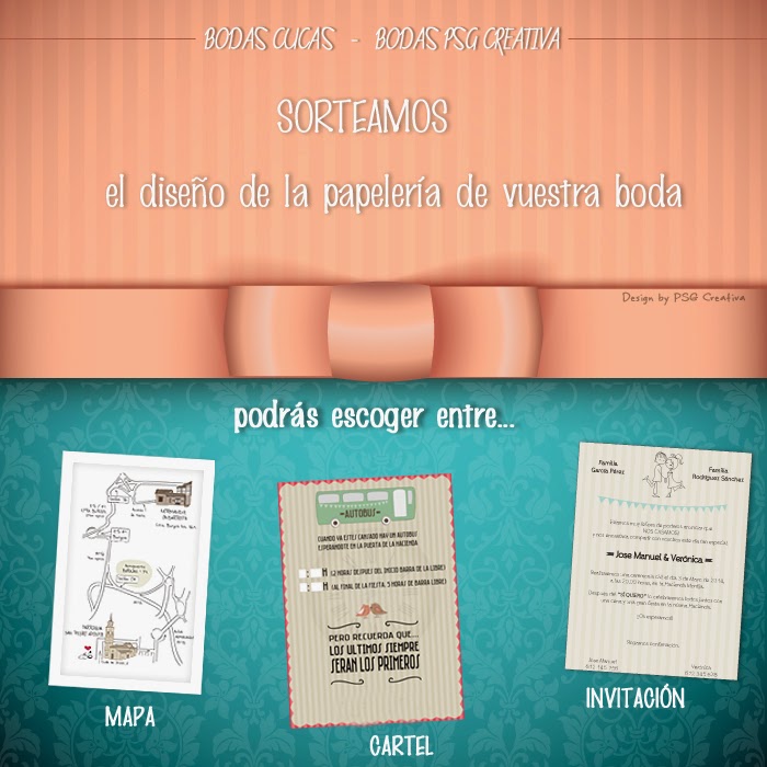 *El ganador/ a podrá escoger entre el diseño de un mapa de cómo llegar al lugar de la celebración de la ceremonia, un cartel o una invitación de boda.