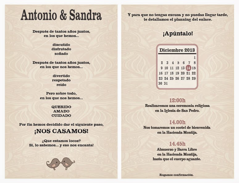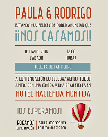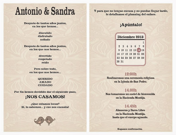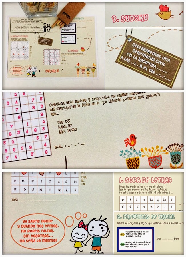 Y dejamos para el final lo que nos ha parecido más original: el ?Save the date? o "Juega", un pasatiempo a modo de sudoku o sopa de letras para que los amigos y familiares averigüen la fecha y el lugar de la boda: