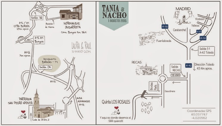 ¿Habíais pensado en incluir un plano en vuestra invitación de boda? A nosotras nos parece una idea genial sobretodo si tenéis mucha gente de fuera: