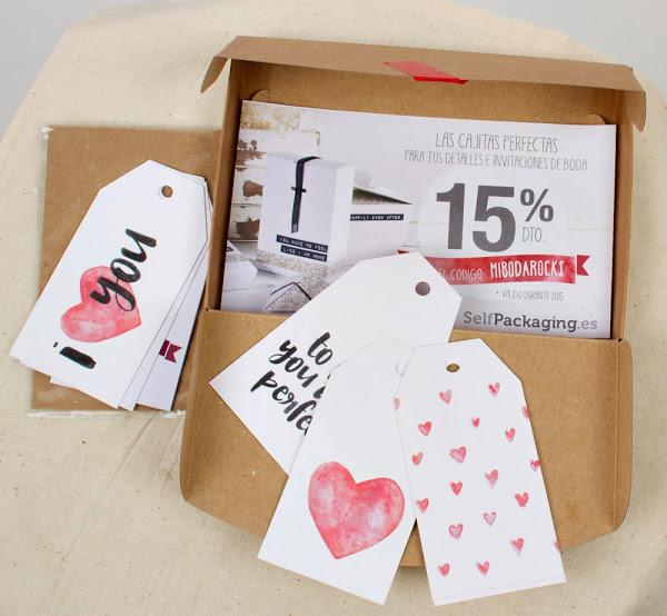 7. Muestra de cajita para guardar los regalos de los invitados con una bolsa de etiquetas muy románticas de Selfpackaging, el lugar perfecto para encontrar las cajas de regalo más bonitas de todo Internet.